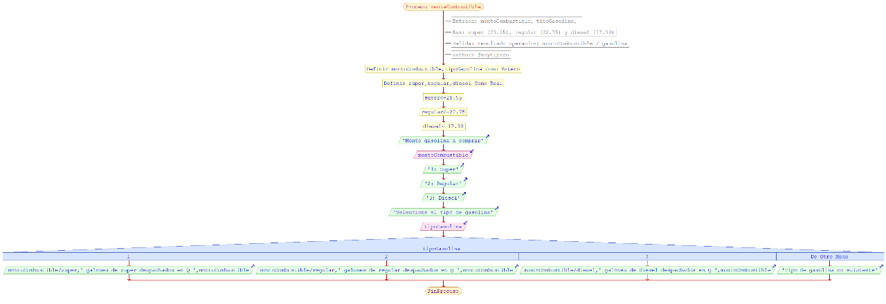 Escribir montoCombustible/diesel,' galones de diesel despachados en Q ',montoCombustible